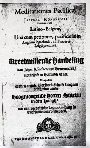 Among the personalities who escaped their war duties can be mentioned the young medical student Niels Stensen / Nicalaus Steno, which according to the biography of Alan Cutler emigrated to Amsterdam while Copenhagen still was surrounded by the Swedish army. The head master of the university, Rasmus Enevoldsen Brochman posted his resignation on May 21, 1659 thereafter he wrote two apologies to the King. On September 12, 1659, three days after the second letter from the king the Academic Council agreed to continue as usual! Therefore first after the drafting of the students in October 1659 the new head master of the university was appointed17. Later next year, while the Kings Council agreed on a cut in the defence expenses in Norway18, the king commanded to the new head master of the university, that “the arms of the deserted students should be returned”19. Because of his pacific and anti-authoritarian views in the newly absolute state of Denmark, Jesper Baltzarsen Könecken was condemned in 1663 by the Copenhagen University Academic Court and expelled from Denmark after spending some time in prison20. Via Sweden he settled in the Netherlands, where he continued to express and publish his pacific views21. Notes5 The concept patriot is borrowed from the