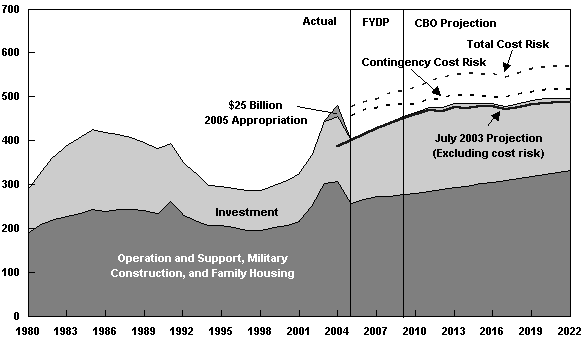 Steven M. Kosiak analyse bekræftes af Congressional Budget Office som har analyceret langtidsvirkningerne af Bush-regeringens mange forslag til modernisering af det amerikanske forsvar. Kongressens budgetkontor udsender årligt analyserne, the Long-Term Implications of Current Defense Plans, hvor den seneste er fra finansåret 2005.