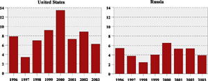 Der var midlertidige pauser i oprustningen mens industrien og politikerne tog bestik af den nye situation og overvejede i hvilken retning rustningerne skulle vendes til størst gavn for dem selv. NATO's udvidelse og våbeneksporten til ulandene var kun midlertidige plastre på sårene.