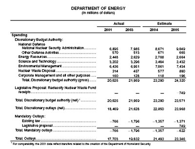 Begyndende med finanslovsforslaget for 2003, Congressional Budget Request, søsatte ministeriet en forpligtigelse til at øge styringen af miljøoprydningen og formindske de totale omkostninger. Med dette engagement var det nødvendigt at “fastfryse” arbejdets omfang og erstatte kontrakter for at anspore entrepenørerne til at forstærke færdiggørelsen af miljøbeskyttelsesarbejdet til lavere udgifter. Imidlertid er der yderligere miljøbelastninger som afvikling og rengøring af overflødige virksomheder, rengøring af radioaktivt forurenede medier og lagring af overflødige atomare og farlige materialer som fortsat produceres af virsomheder der i øjeblikket arbejder for energiministreriet. Eksempelvis anslår Energiministeriet, at der aktuelt er over 2,000 forurenede virksomheder som er eller vil blive overflødige i forhold til målsætningen for finansåret 2025. Omkring 290 faciliteter er i øjeblikket overflødige eller vil blive det i løbet af finansårsperioden 2005-2009.«