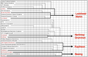 Hvad gemmer sig bag ved den europæiske rumindustri, bl.a. organiseret i the European Association of Aerospace Industries? Nogle af de store private våbenfabrikker så som Airbus, Alenia Aerospazio, BAE SYSTEMS, Cobham plc, Dassault Aviation, EADS, Finmeccanica, Liebherr Aerospace, Rolls-Royce, SAAB AB, SNECMA og THALES.