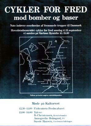 cykler kommer fra Kultorvet i København. Afgang efter fredsmøde på Kultorvet kl. 13-1 4 Talere: Ib Christensen,